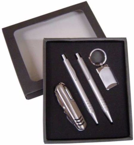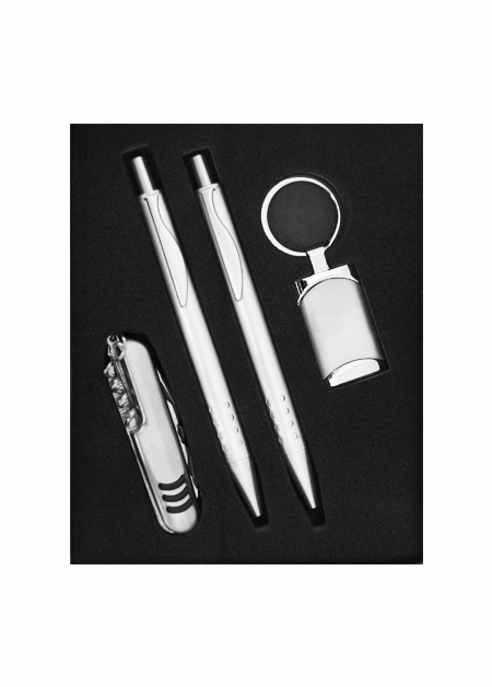 Kit executivo com 4 peças em estojo, material papelão com base emborrachada.