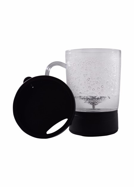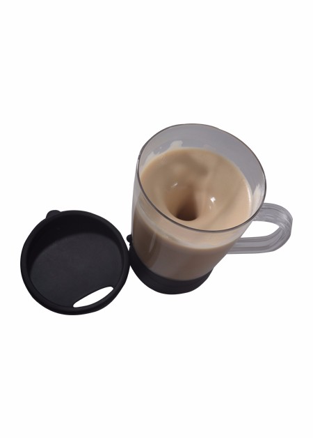 Caneca acrilíca com capacidade para 400ml, com mixer e tampa protetora.