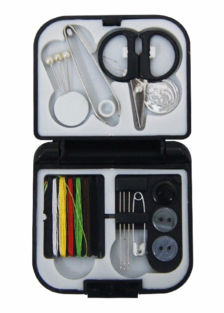 Kit costura, estojo de plástico resistente.