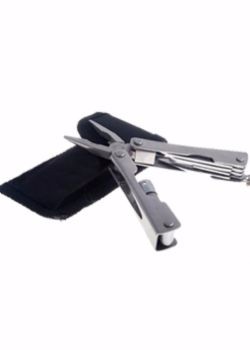 Alicate com 5 funções mais lanterna, material em metal.