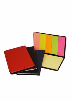 Bloco de anotação com capa de couro sintético, post-it colorido. 25 Folhas amarelas Medidas para gravação (CxL): 8 cm x 12.5 cm Tamanho total (CxL): 8 cm x 12.5 cm Peso do produto: 74 g