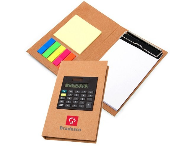 Bloco de anotações com calculadora.