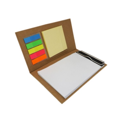 Bloco de anotações com calculadora, post-it (20 folhas) e marcadores de páginas (azul, verde, amarelo esverdeado, rosa e laranja aproximadamente 25 marcadores cada cor).