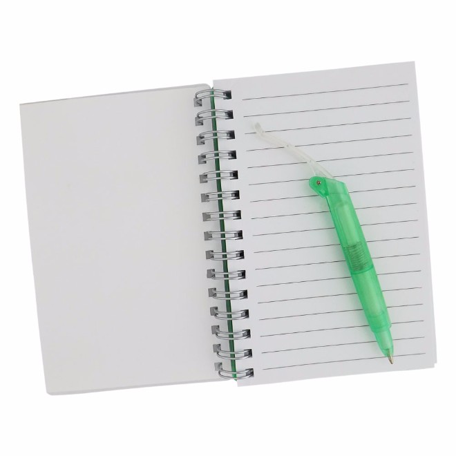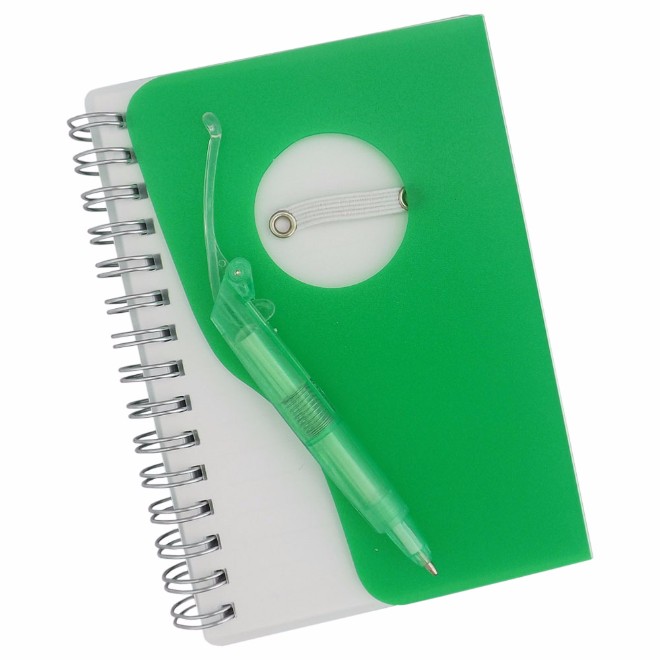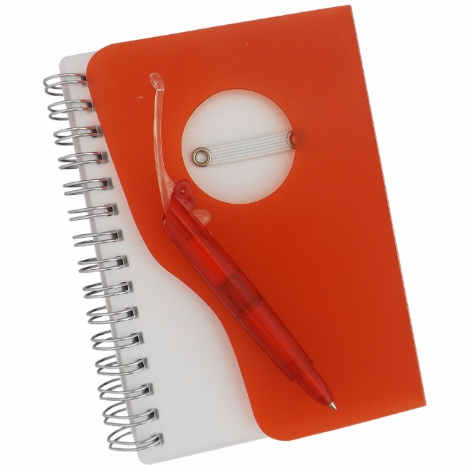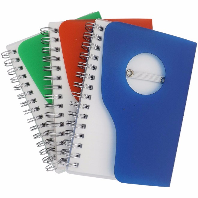 Bloco de anotações com capa de plástico resistente, caneta esferográfica e aproximadamente 100 folhas. Tamanho total (CxL): 13.5 cm x 10 cm Peso do produto: 103 g
