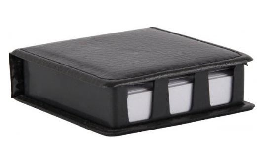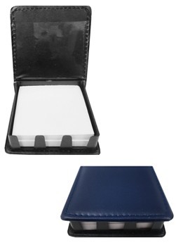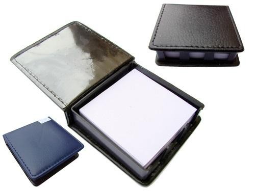 Bloco de anotações, disponível nas cores azul e preto. Contém aproximadamente 200 folhinhas. Medidas para gravação (CxL): 6,5 cm x 7,0 cm Tamanho total (CxLxE): 9,0 cm x 9,0 cm x 3,0 cm Peso do produto: 119 g