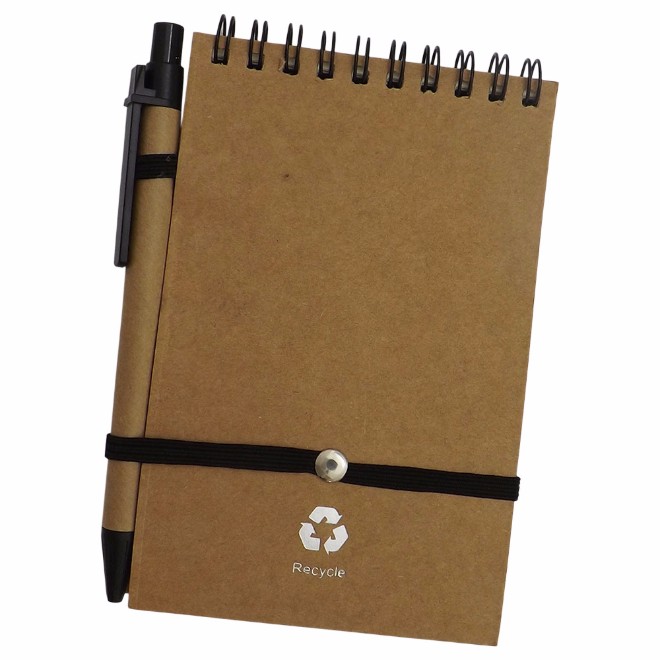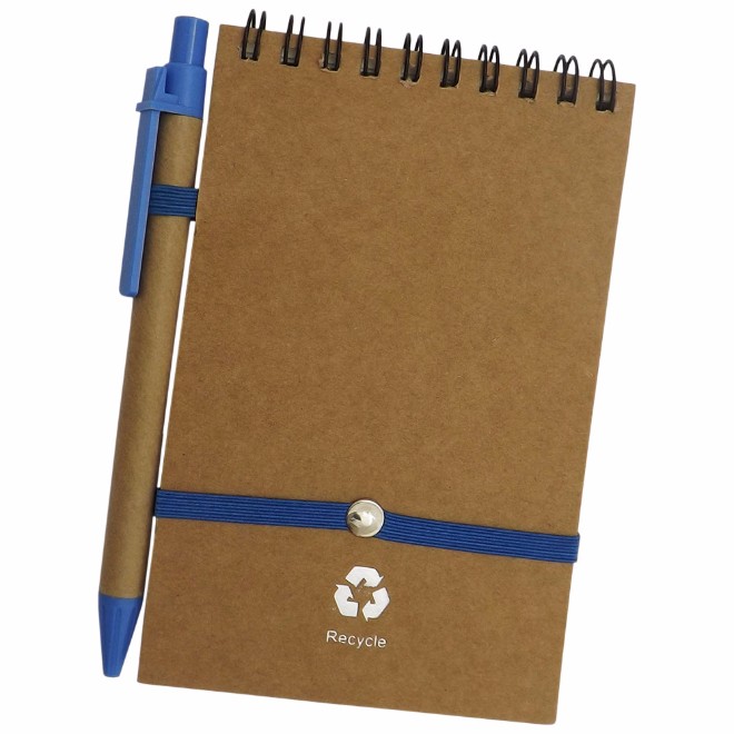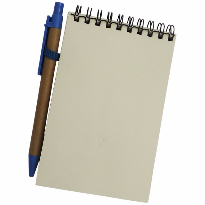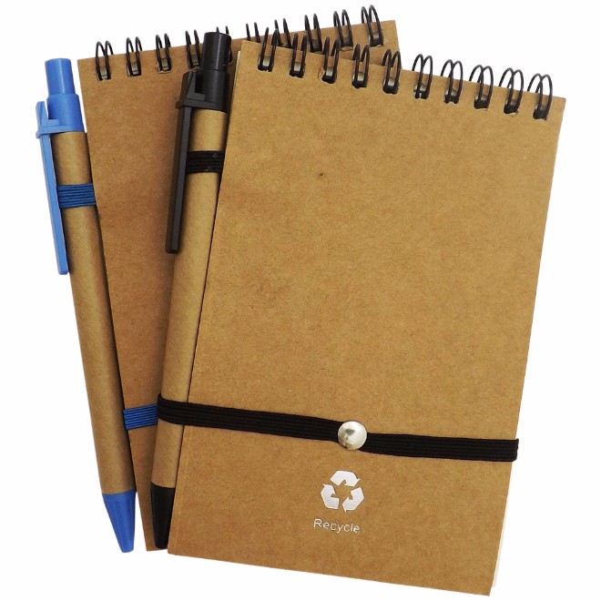 BLOCO DE ANOTAÇÕES ECOLOGICO + CANETA ECOLOGICA, NA COR MARROM COM AZUL E MARROM COM PRETO CLARO.