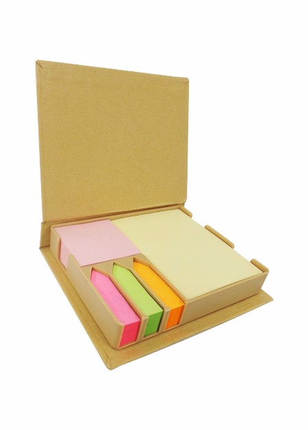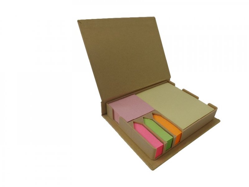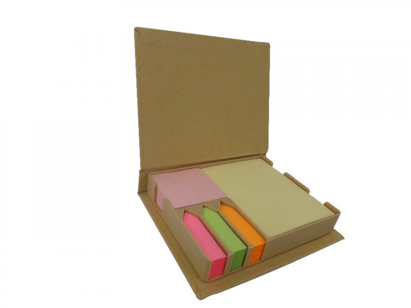 Bloco de anotações ecológico com post-it. Medidas para gravação (CxL): 10,0 cm x 12,0 cm Tamanho total (CxD): 10,8 cm x 13,8 cm Peso do produto: 194 g