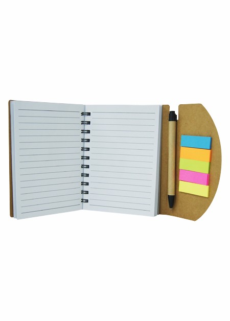 Bloco de anotações ecológico com post-its e caneta reciclável. Contém 70 páginas. Medidas para gravação (CxL): 4,0 cm x 15,5 cm Tamanho total (CxL): 12,0 cm x 14,0 cm Peso do produto: 121 g