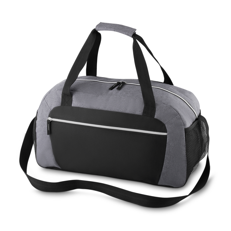 BOLSA ESPORTIVA Bolsa Esportiva em polyester, zíper frontal, bolsos laterais, alça de mão e ombro.