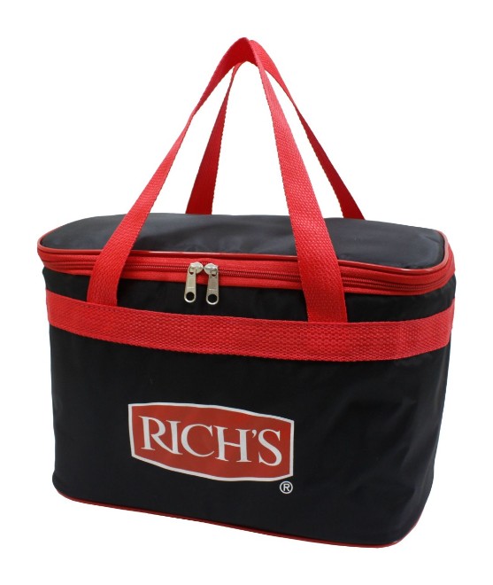 Bolsa térmica SX044 Bolsa térmica 13 litros confeccionada em bagum sintético, contém revestimento interno em polietileno atóxico soldado (não vaza) e alça para mãos em polipropileno.