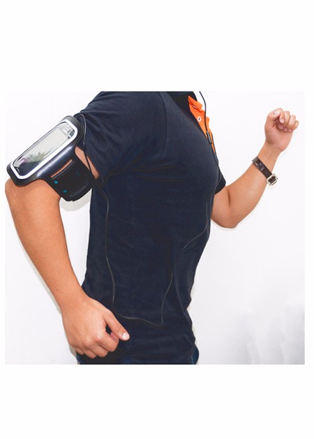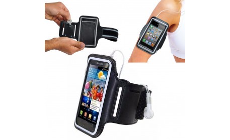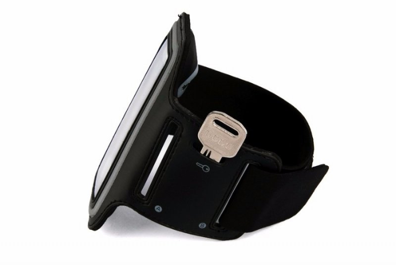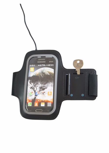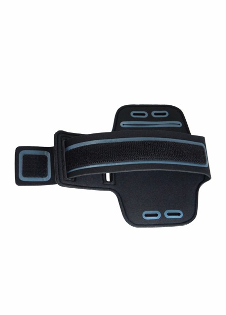 Descrição: Braçadeira de neoprene com detalhe frontal em couro sintético. Visor plástico e contorno prata, possui "bolso" para chave, "cinta" de velcro regulável com posição indicativa na lateral(A e B). Possui contorno azulado no velcro, parte... Ver mais