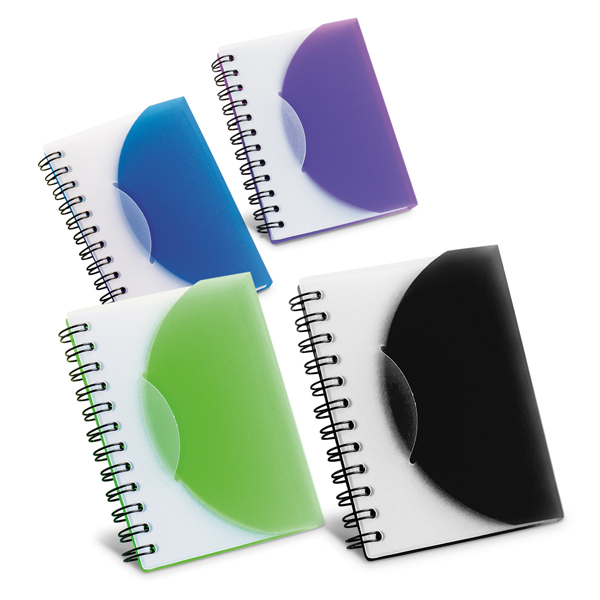 Caderno. PP semi-rígido. Com 80 folhas não pautadas. 78 x 108 mm