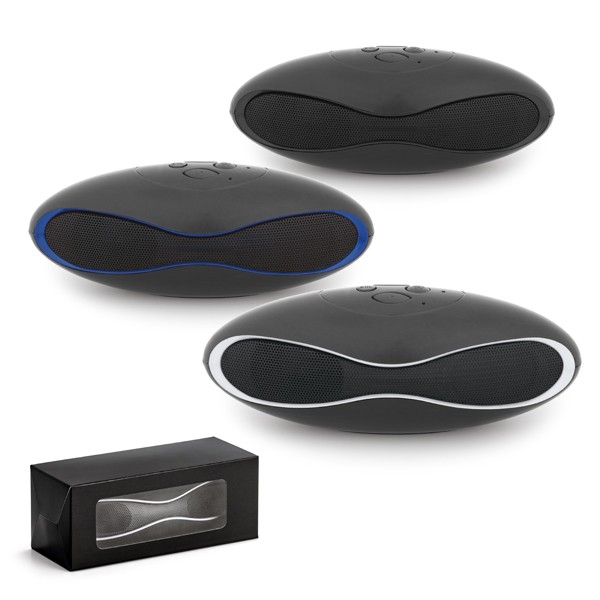 Caixa de som com microfone. ABS. Acabamento emborrachado. Com transmissão por bluetooth e 3W/4Ω. Autonomia até 3 h. Função para atender chamadas, controle de volume e conexão à playlist do dispositivo móvel. Incluso cabo USB para carregar. Fornecida em caixa presente. 150 x 56 x 58 mm | Caixa: 155 x 61 x 61 mm