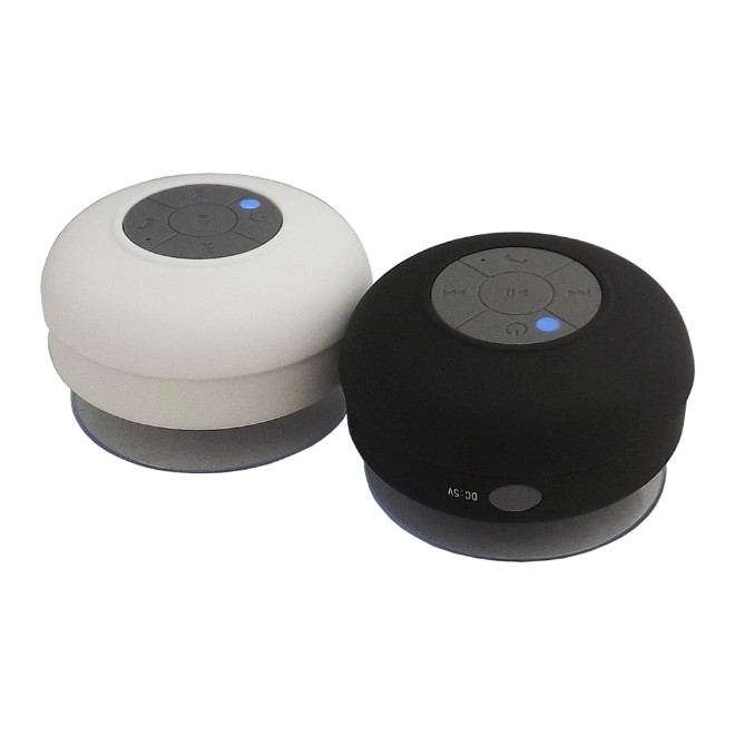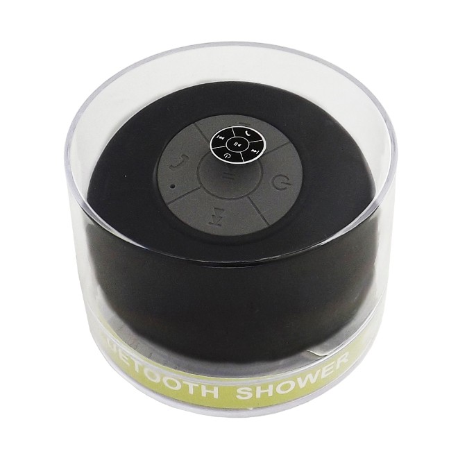Caixa de som redonda para a hora do banho, a prova d água, recarregável, com ventosa para parede e vidros, com bluetooth, atende ligações.