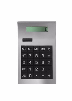 Calculadora de plástico com teclado de borracha. Medidas para gravação (CxL): 3,3 cm x 5,5 cm Tamanho total (CxL): 14,5 cm x 9,2 cm Peso do produto: 77 g