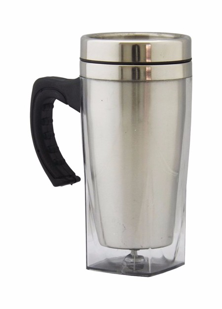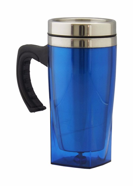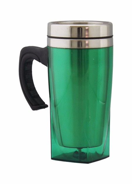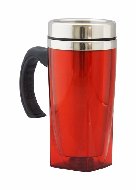 Caneca acrilíca com o fundo quadrado, capacidade para 450 ml, nas cores: vermelho, azul, verde e transparente, fundo emborrachado.