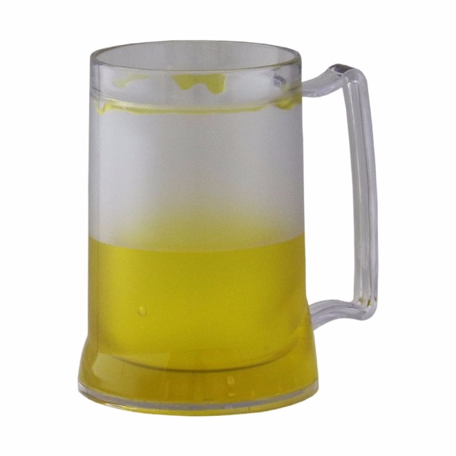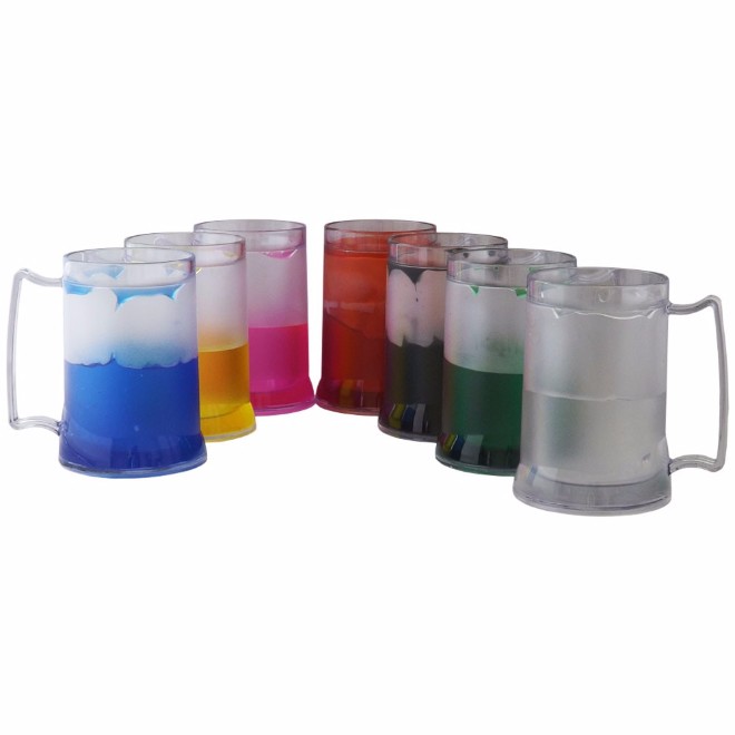 Caneca de 400 ml para Chopp, em acrílico transparente, com gel, cores: verde, vermelho, amarelo, preto, rosa e transparente.
