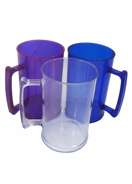 Caneca de 500 ml, em acrílico translúcido. Promoção apenas para essas cores. Tamanho total (CxC): 12,5 cm x 23,9 cm Peso do produto: 84 g