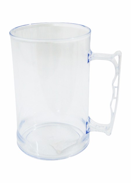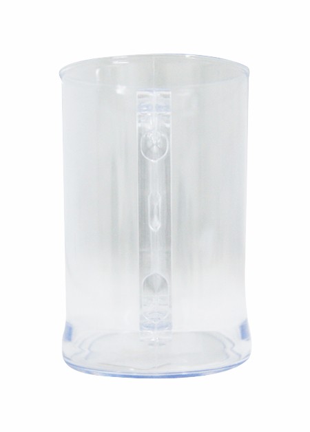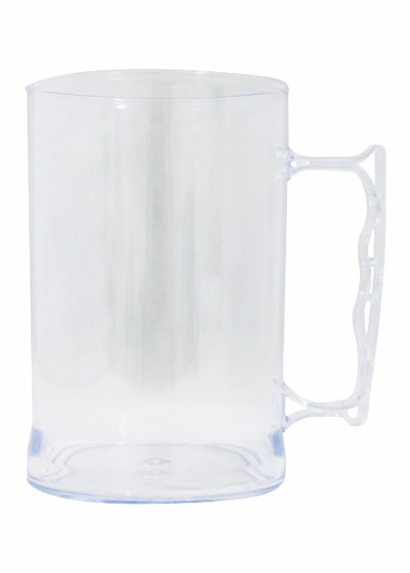 Caneca de aproximadamente 380 ml, em acrílico transparente. Tamanho total (CxC): 10,5 cm x 22,0 cm Peso do produto: 41 g