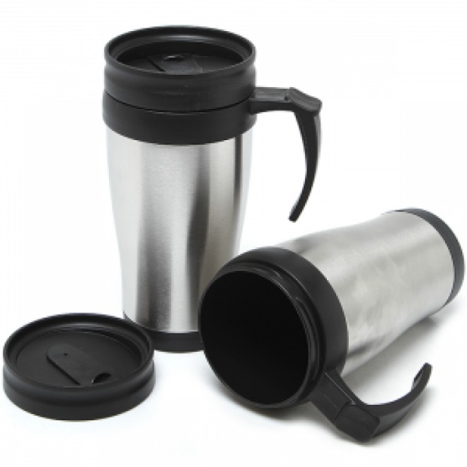 Caneca de Inox, com capacidade para 400 ml. Medidas para gravação (CxC): 11,1 cm x 24,1 cm Tamanho da tampa (CxC): 2,1 cm x 24,6 cm Tamanho do total (CxL): 16,7 cm x 24,6 cm Peso do produto: 204 g