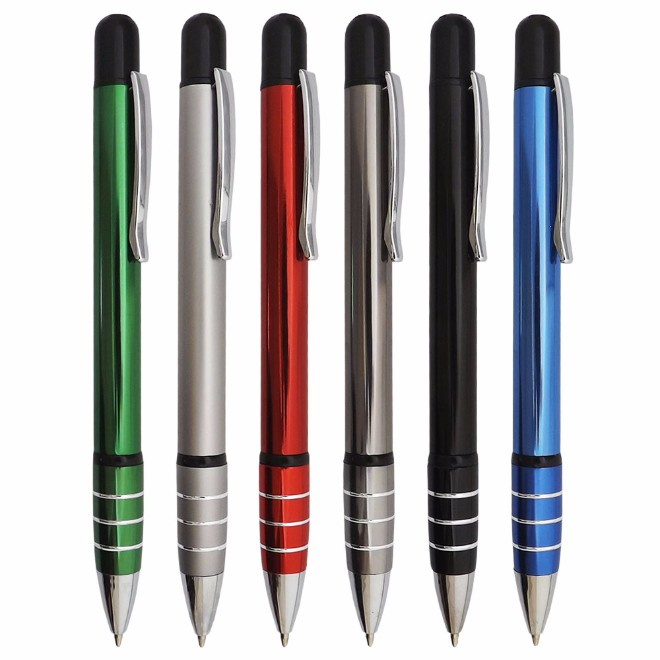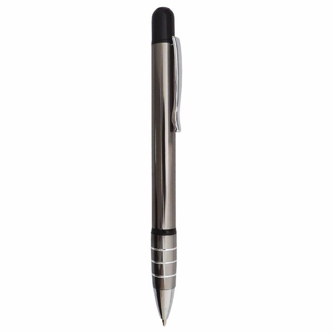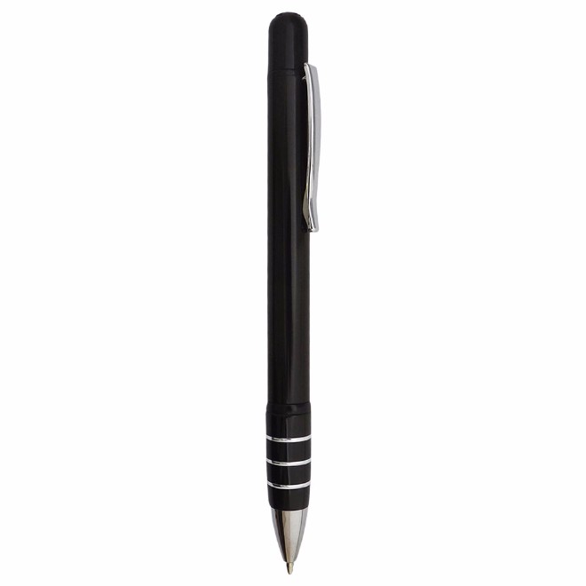 Caneta de alumínio roller, com detalhe de 3anéis e marca texto. Tamanho total (CxL): 14,9 cm x 3,9 cm Peso do produto: 19 g