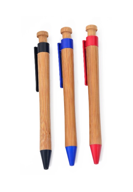 Caneta de madeira, com detalhes coloridos. Tamanho total do produto: (CxC) 14,0cm X 4,0cm Peso total do produto: 12g