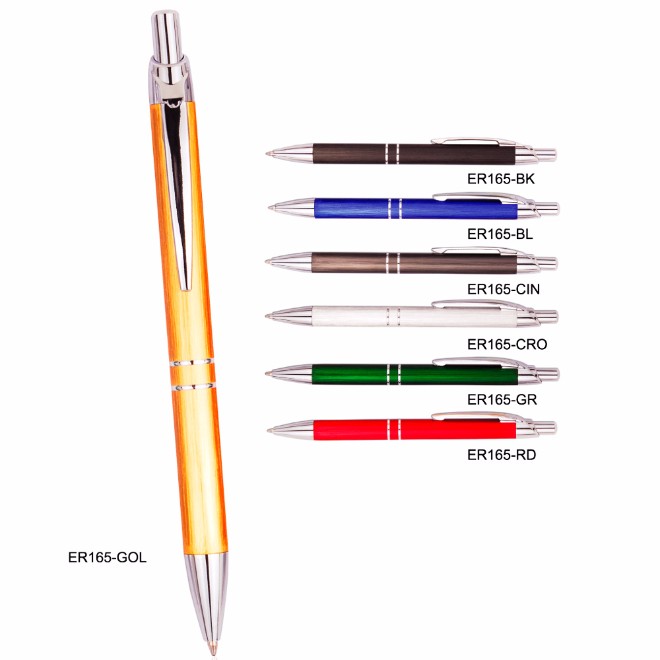Caneta de metal. Tamanho total (CxD): 14,1 cm x 3,5 cm Peso do produto: 12 g