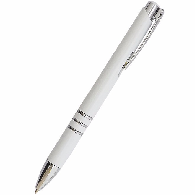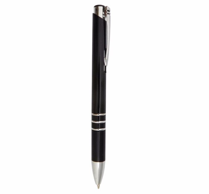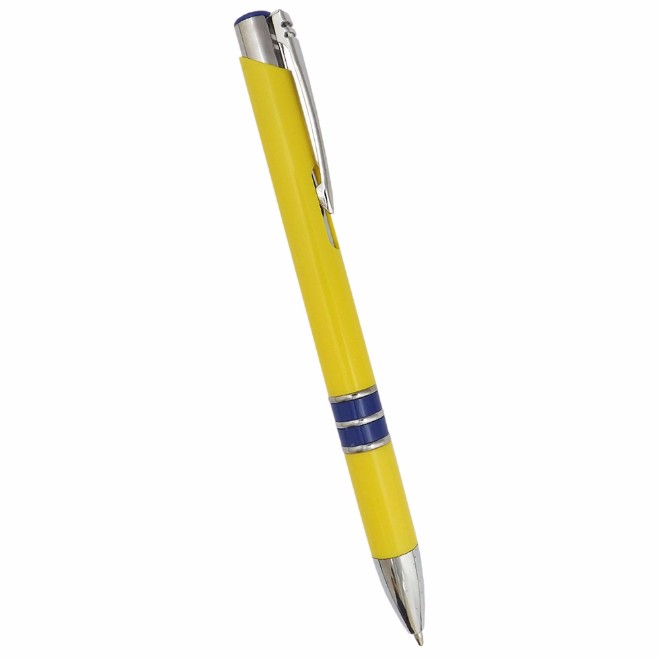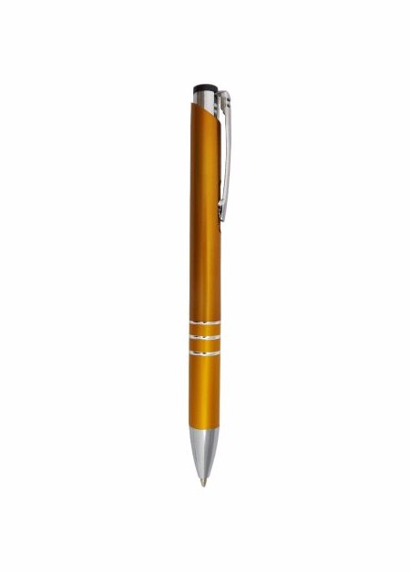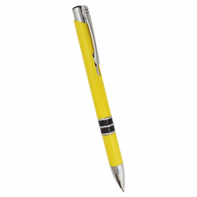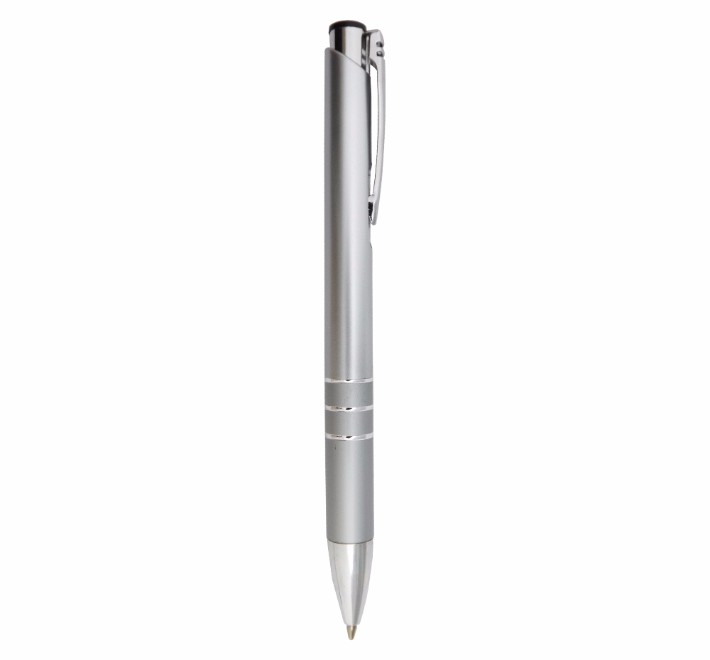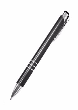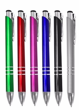 Caneta de metal com clip plástico e ponta para teclados touchscreen. Tamanho total do produto: (CxC) 14,0cm X 4,0cm Peso total do produto: 16g