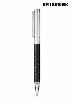 Caneta de metal, com detalhe de couro sintético azul. Medidas para gravação (CxD): 5,3 cm x 3,0 cm Tamanho total (CxD): 13,7 cm x 3,8 cm Peso do produto: 31 g