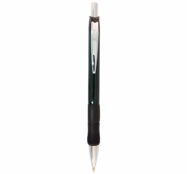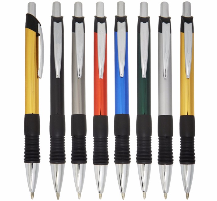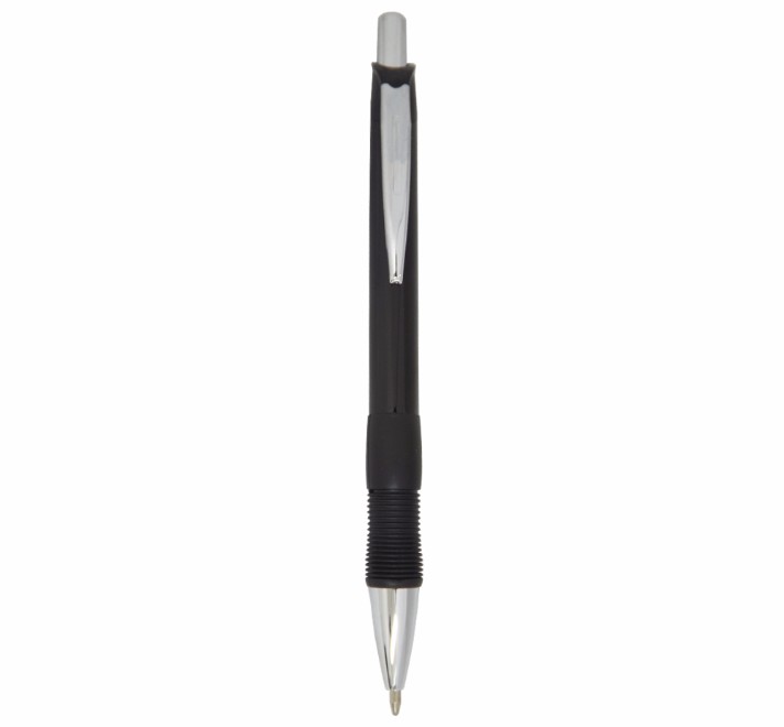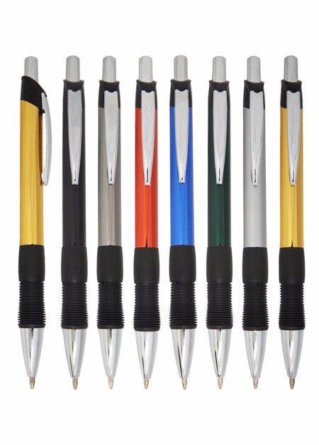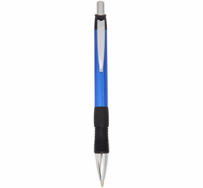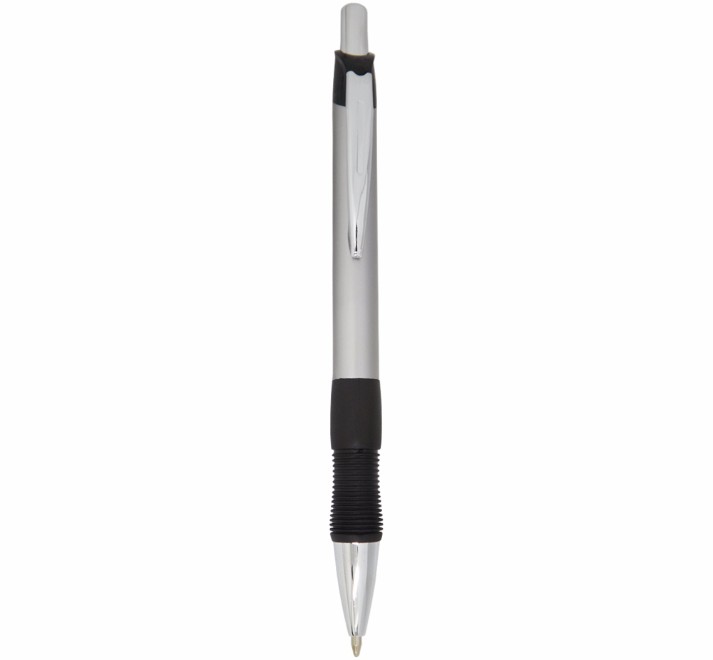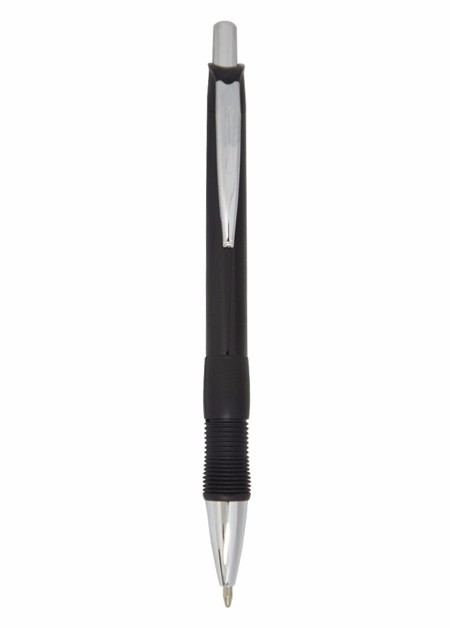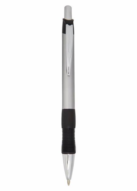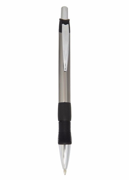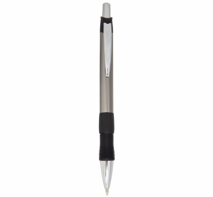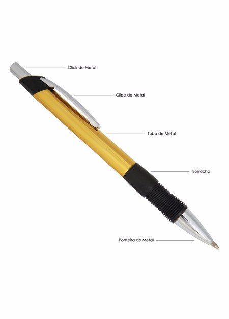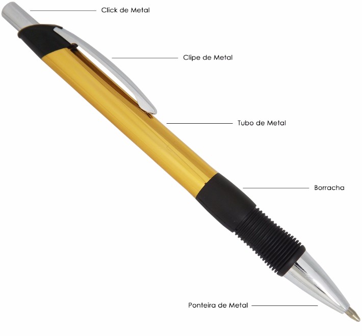 Caneta de metal com detalhe emborrachado. Tamanho total (CxD): 14,0 cm x 3,3 cm Peso do produto: 14 g