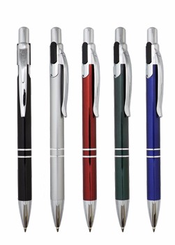Caneta de metal com detalhe emborrachado. Medidas para gravação (CxC): 5,8 cm x 3,4 cm Tamanho total (CxC): 14,5 cm x 3,4 cm Peso do produto: 18 g
