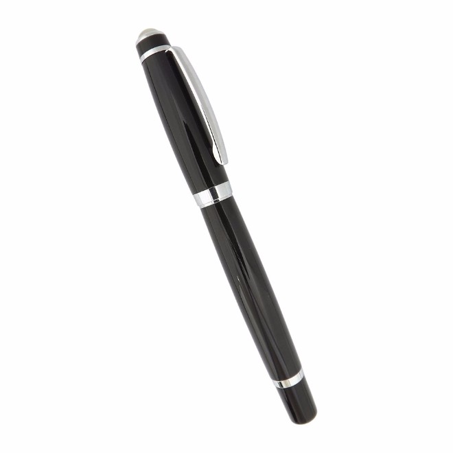 Caneta de metal, com detalhes pratas. Tamanho total do produto: (CxC) 13,7cm X 4,0cm Peso total: 25g