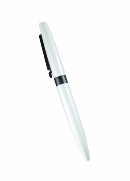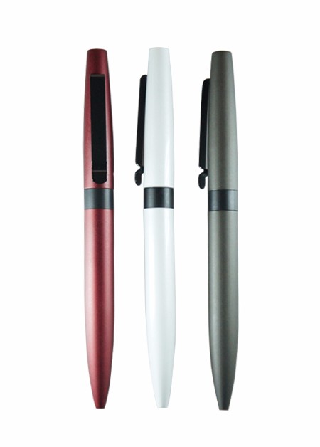 Caneta de metal, esferográfica com escrita azul. Tamanho total do produto: (CxC) 14,5cm X 4,0cm Peso total do produto: 28g