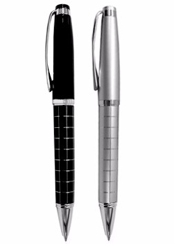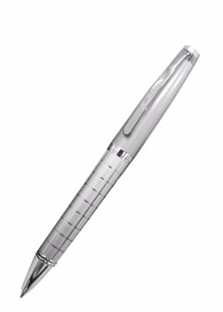 Caneta de metal fosco com detalhes quadriculado. Medidas para gravação (CxD): 5,0 cm x 3,8 cm Tamanho total (CxD): 13,7 cm x 4,0 cm Peso do produto: 34 g