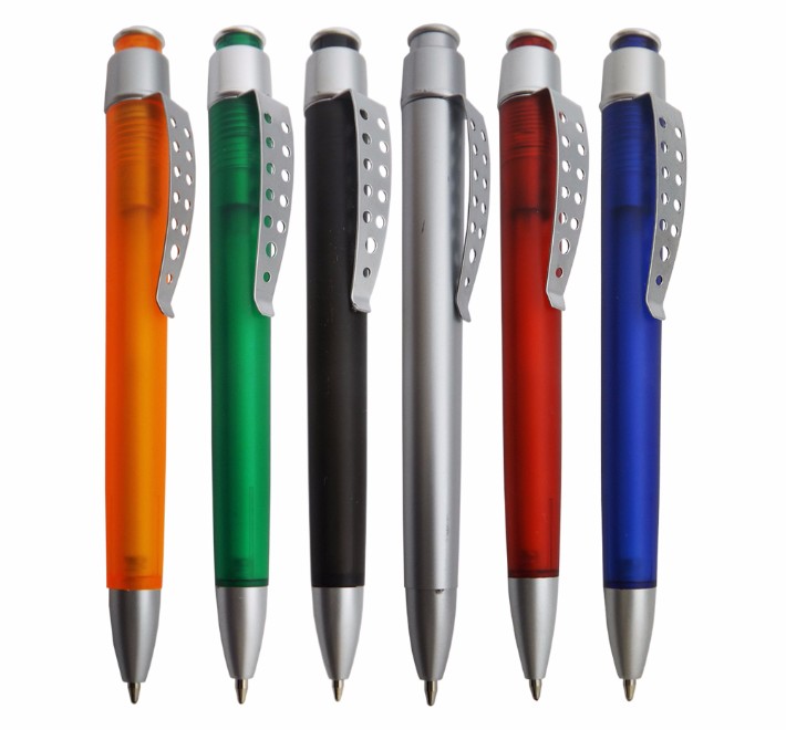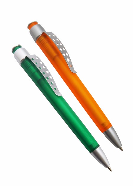 Caneta de plástico. Tamanho total (CxD): 13,5 cm x 4,2 cm Peso do produto: 8 g
