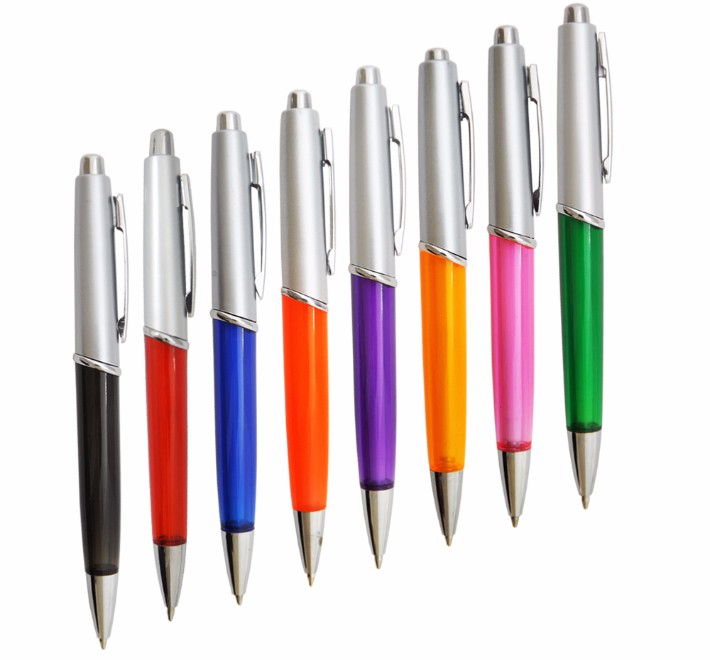 Caneta de plástico. Medidas para gravação (CxD): 4,7 cm x 3,5 cm Tamanho total (CxD): 14,5 cm x 3,5 cm Peso do produto: 9 g