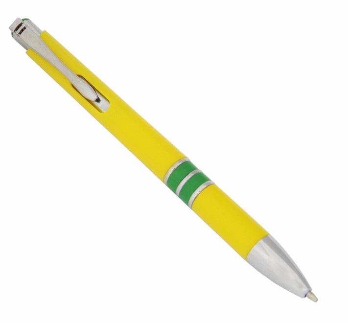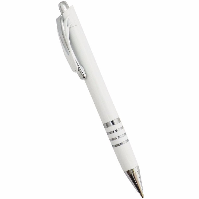 Caneta de plástico. Medidas para gravação (CxC): 7,0 cm x 3,3 cm Tamanho total (CxC): 14,0 cm x 3,3 cm Peso do produto: 11 g