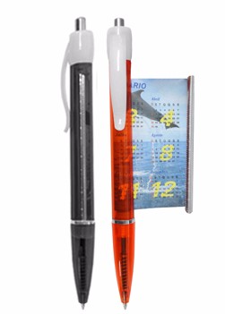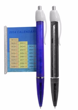 Caneta de plástico com calendário 2015/2016 e tabuada. Medida Total (CxL): 14.8 x 5 cm Peso Total: 13 g