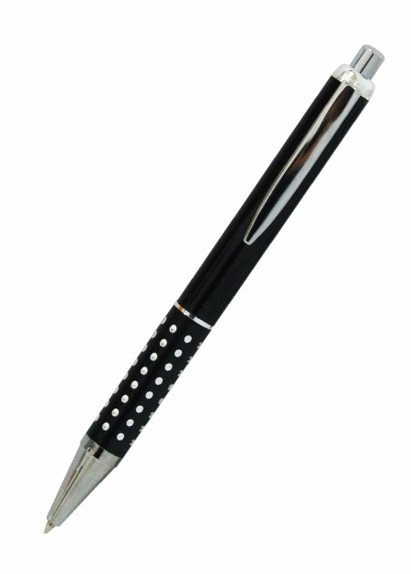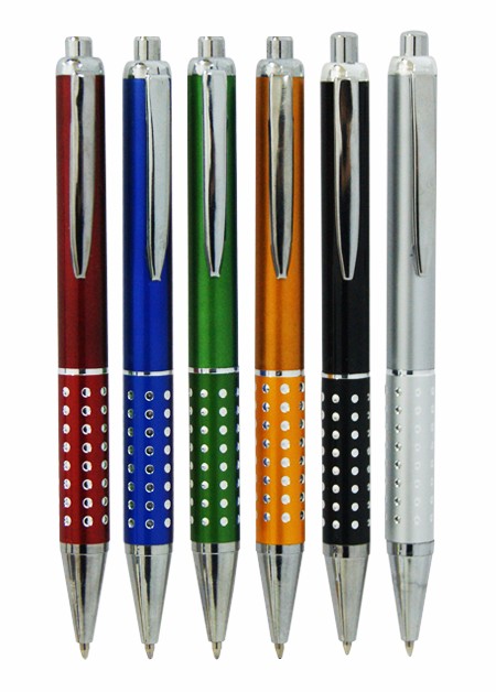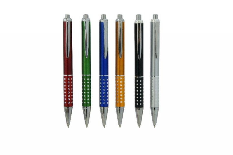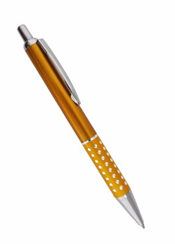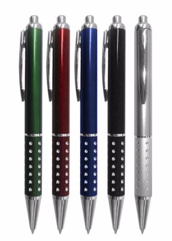 Caneta de plástico, com detalhes brilhantes no corpo da caneta. Medidas para gravação (CxC): 13,7 cm x 2,9 cm Tamanho total (CxC): 13,7 cm x 3,5 cm Peso do produto: 9 g