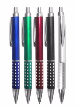 Caneta de plástico, com detalhes prateados na extensão do corpo da caneta. Medidas para gravação (CxC): 6,0 cm x 3,5 cm Tamanho total (CxC): 13,5 cm x 3,5 cm Peso do produto: 10 g