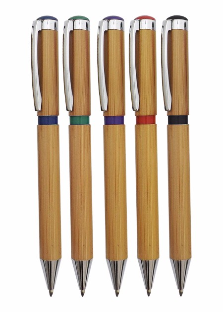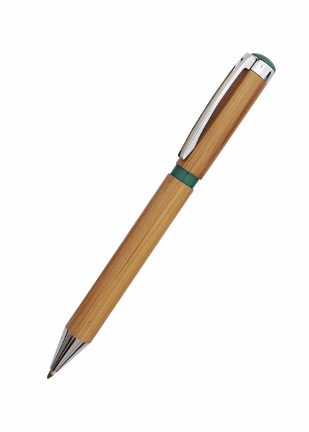 Caneta ecológica de bambu com detalhes de plástico e metal. Tamanho total (CxD): 13,8 cm x 3,6 cm Peso do produto: 17 g