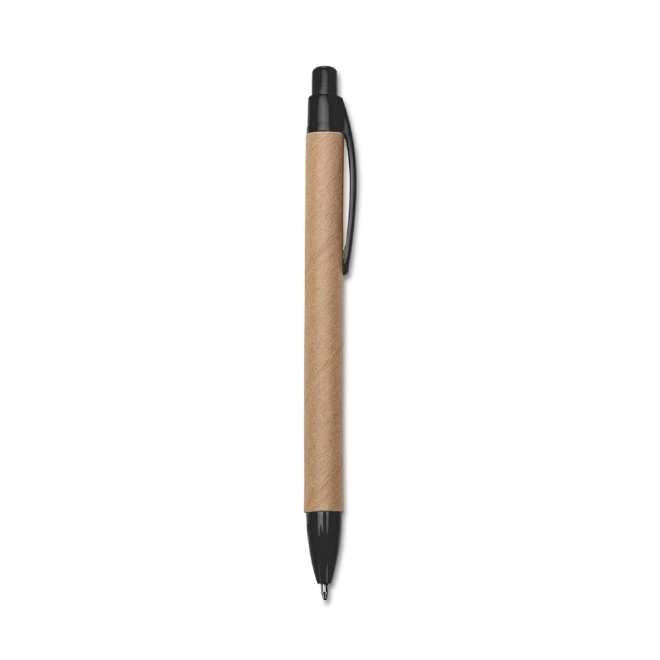 Descrição: Caneta ecológica de papelão com detalhes coloridos, o clip pode facilmente ser retirado para personalização no corpo da caneta. Clip e ponteira plástica, aciona por clique.