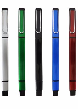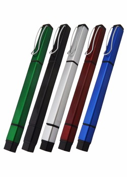 Caneta esferográfica com marca texto quadrada. (cor amarela), material de plástico. Tamanho total (CxL): 14,9 cm x 4,0 cm Peso do produto: 12 g