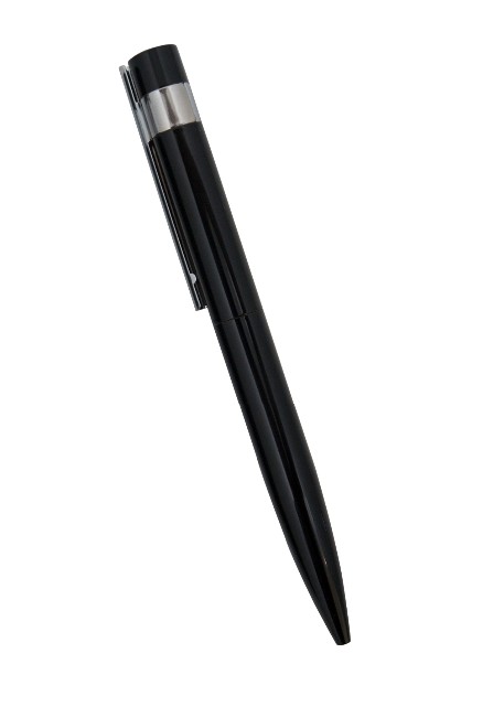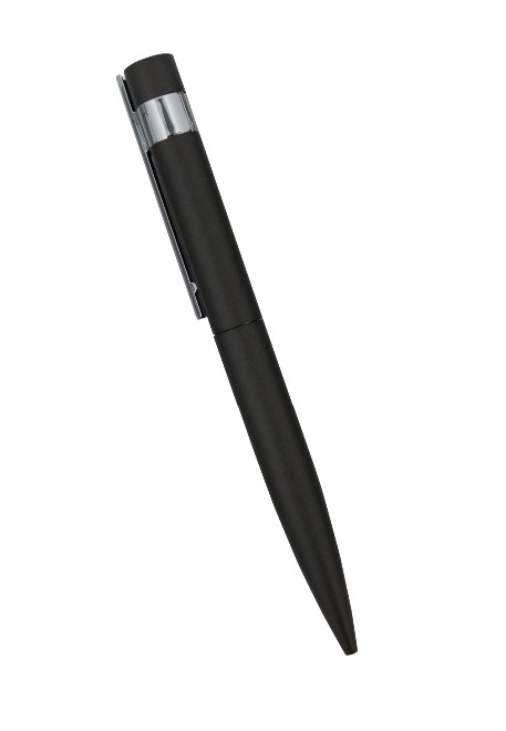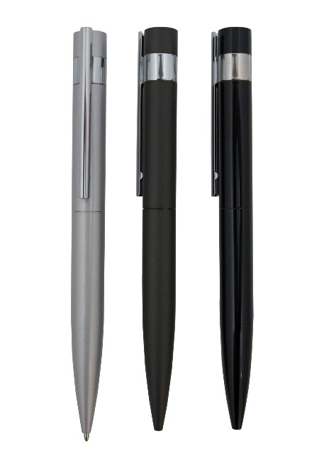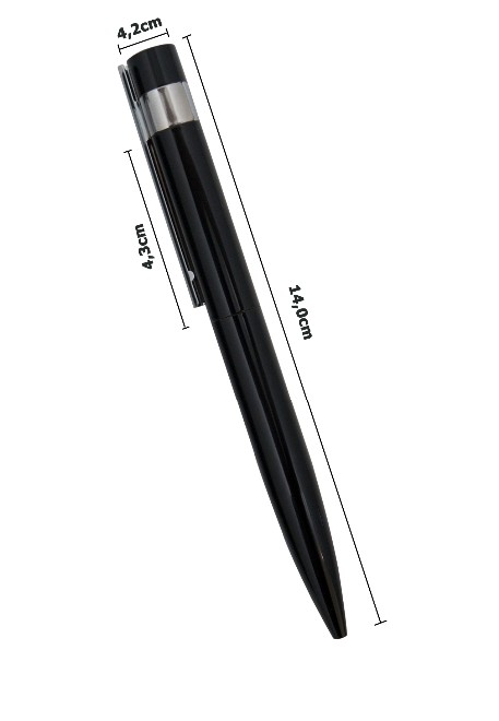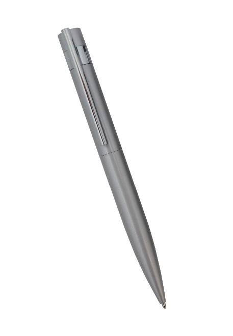 Caneta esferográfica de metal, com clip na cor prata. Tamanho total do produto: (CxC) 14,0cm X 4,0cm Peso total do produto: 27g