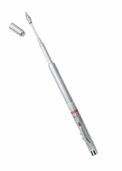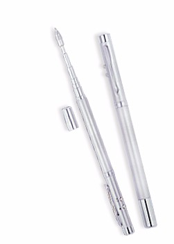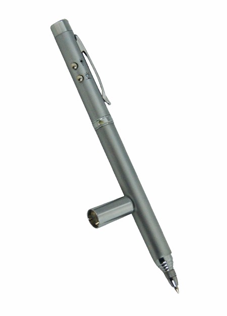 Caneta metal 4 em 1 sendo: * Caneta Esferográfica * Laser * Led * Palmatória Medidas para gravação(CxL): 4,6 cm x 1,5 cm Tamanho total(CxL): 15,0 cm x 3,3 cm Peso do Produto: 65 g Peso: 31 g
