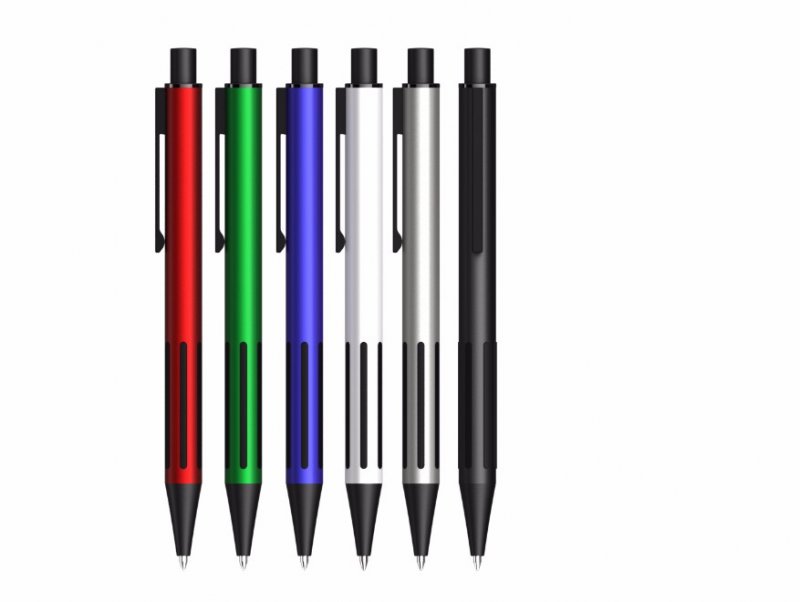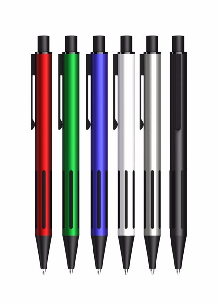 Caneta Metal, com detalhe preto. Medidas para gravação (CxD): 5,0 cm x 1,5 cm Tamanho total (CxD): 13,6 cm x 3,3 cm Peso do produto: 15 g