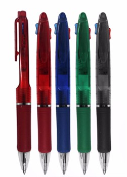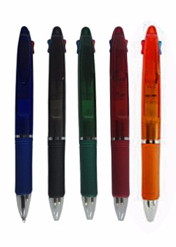 Caneta plástica 2 em 1. Tamanho total (CxC): 14 cm x 4 cm Peso do produto: 10 g