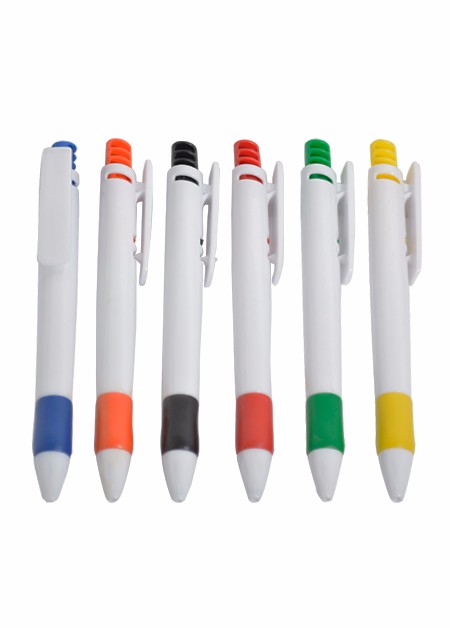 Caneta plástica colorida com apoiador emborrachado. Tamanho total do produto: (CxL) 14,0cm X 4,0cm Peso total do produto: 12g