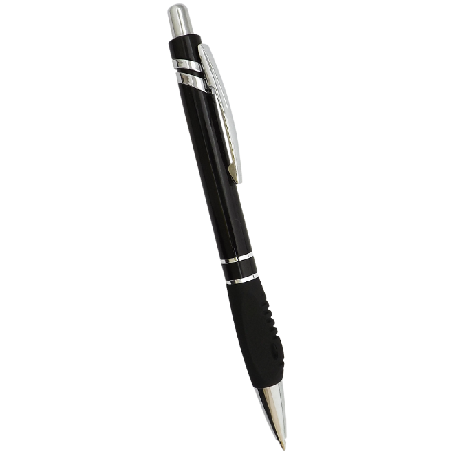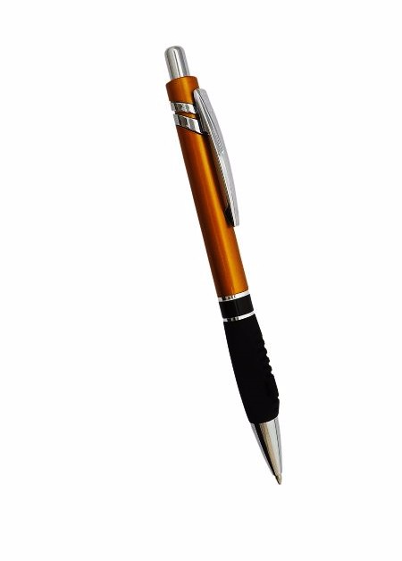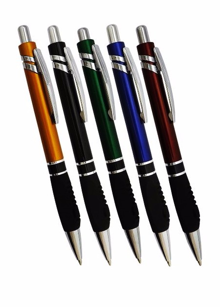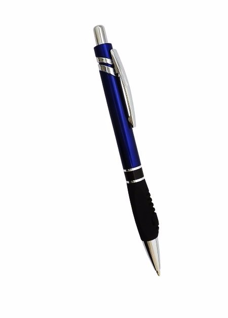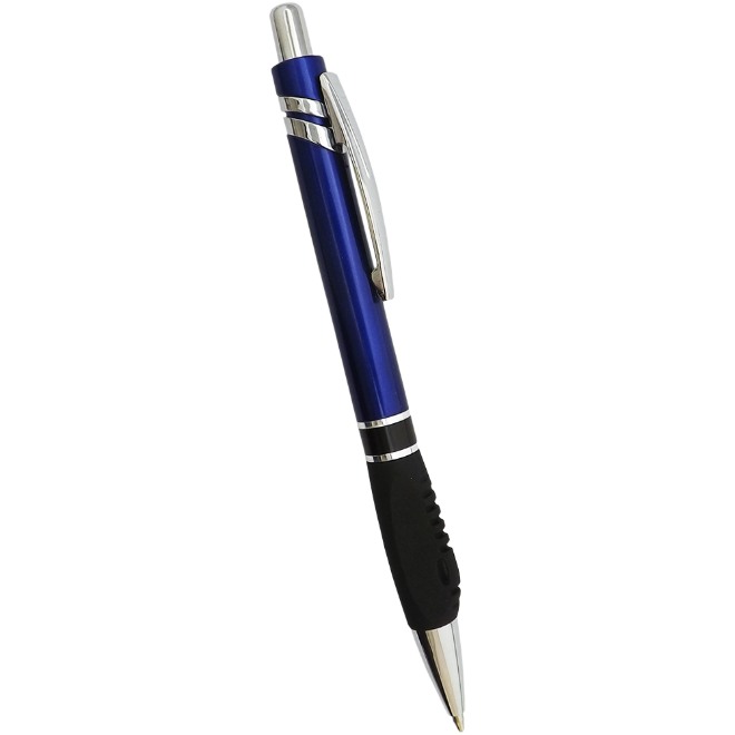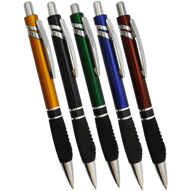 Caneta plástica, com dois anéis, diversas cores e carga azul. Medidas para gravação (CxL): 5.5 cm x 4 cm Tamanho total (CxL): 14.5 cm x 4 cm