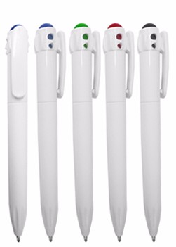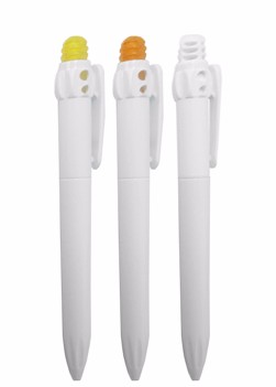 Caneta plástica esferográfica. Medidas para gravação (C x L): 6,3 cm x 4 cm Tamanho total (C x L): 13,3 cm x 4 cm Peso: 0,09 g